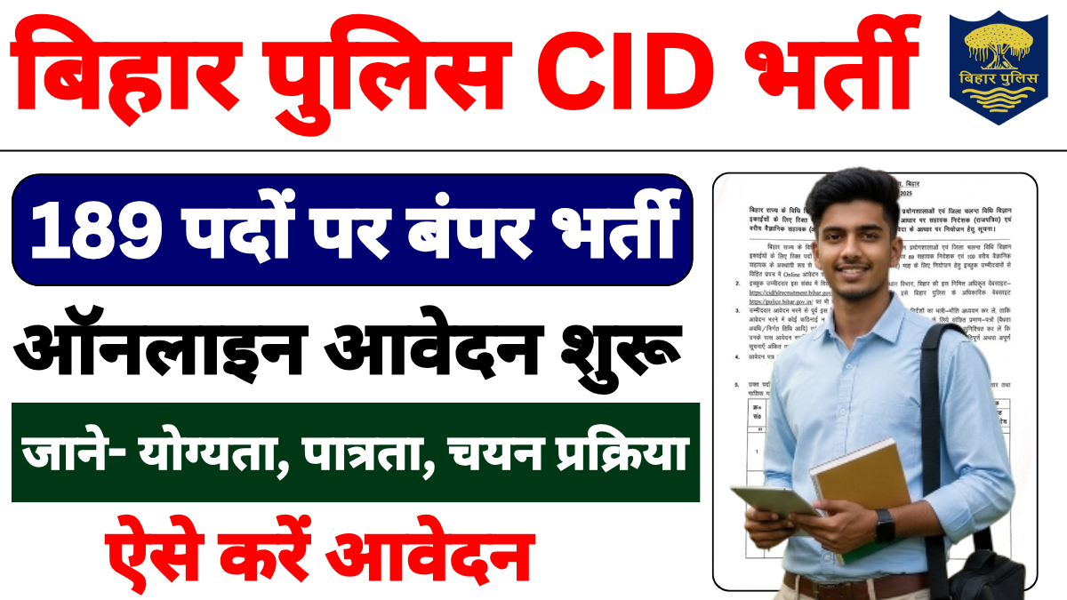 Bihar Police CID Recruitment 2025 – Apply Online 189 Assistant Director, Sr Scientific Assistant Posts Last Date – 31 October 2025