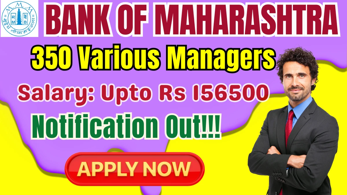 Bank of Maharashtra Various Managers Recruitment 2025 – Apply Online 350 Posts (Last Date - 30 September 2025)