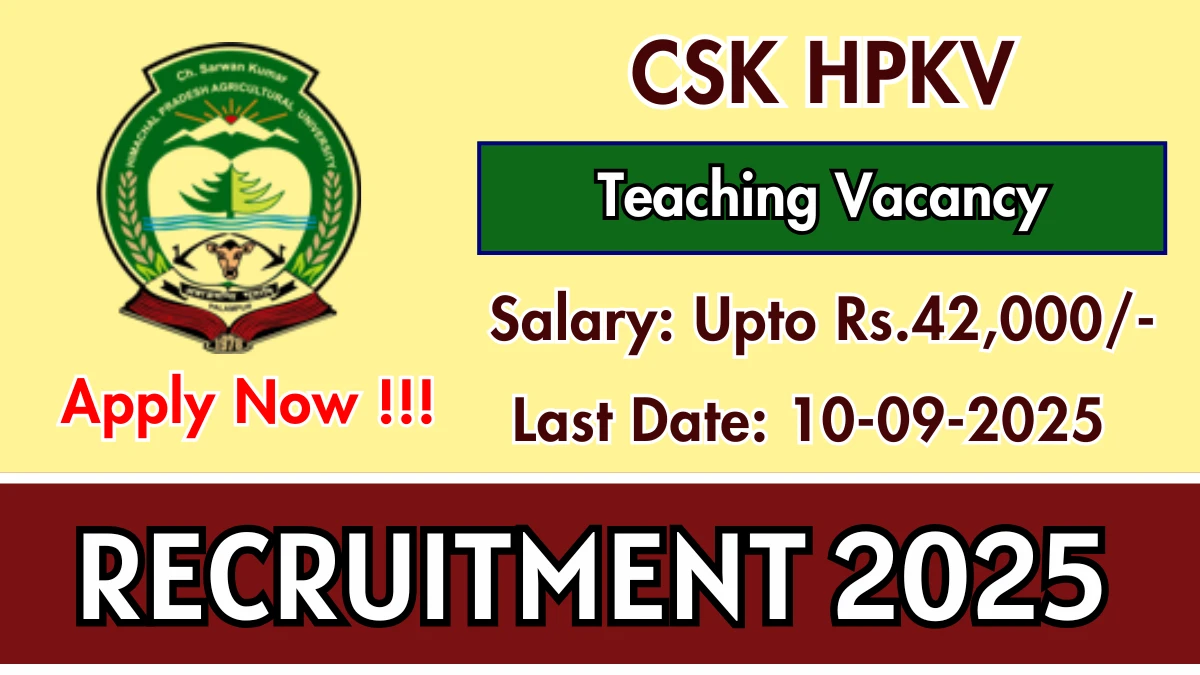 CSK HPKV Teaching Recruitment 2025 – Apply Now