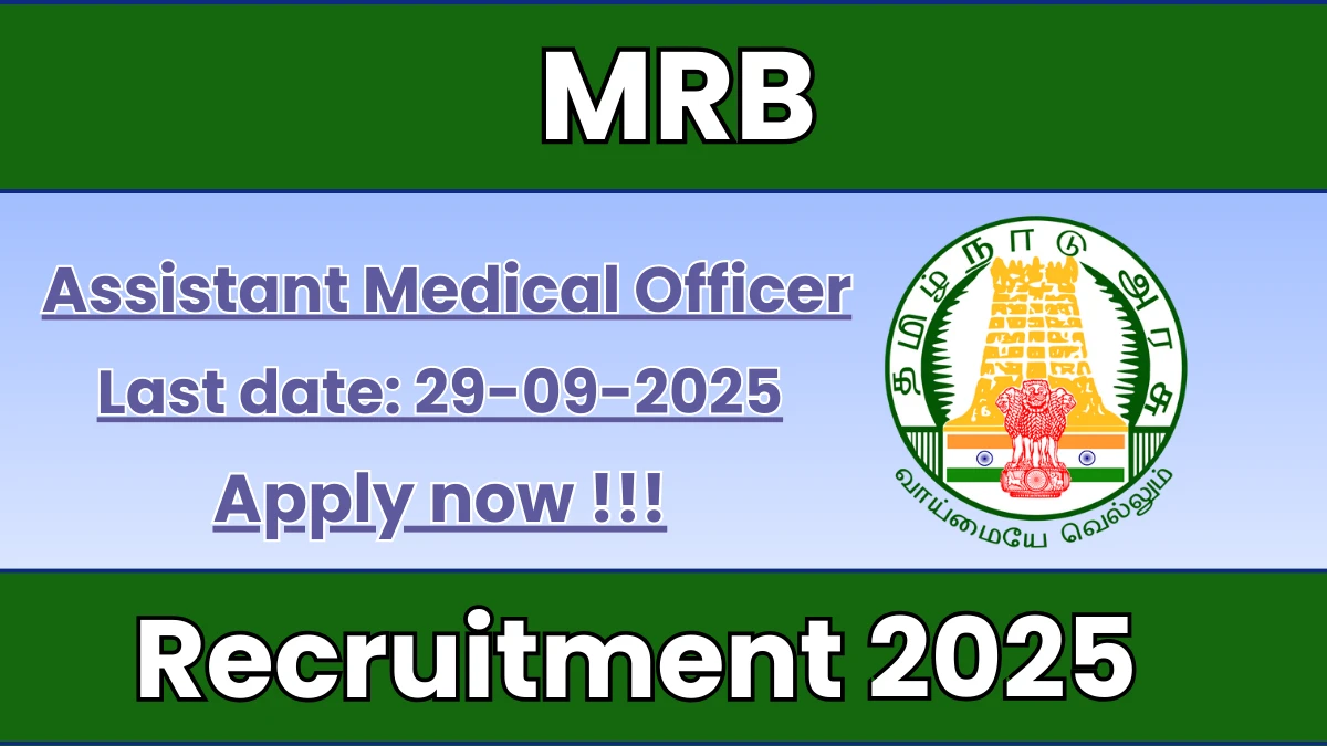 The Medical Services Recruitment Board (MRB) has released the official notification for the recruitment of Assistant Medical Officer posts. Eligible candidates can apply online from 09 September 2025 to 29 September 2025 through the official website mrb.tn.gov.in.