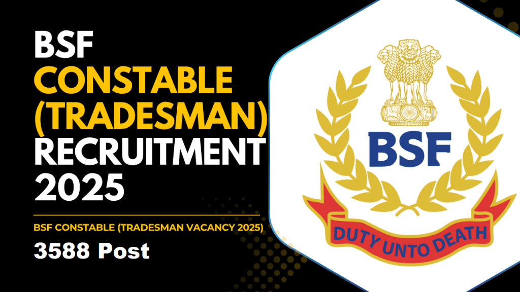 Border Security Force (BSF), has released a notification on official website for the recruitment of Constable Tradesman Post. This recruitment is for 3588 positions. BSF Application Form has started on 26 July 2025 & the candidates can apply till 24 August 2025. Candidates must check the complete details for BSF Constable Tradesman Recruitment 2025 which has given below.